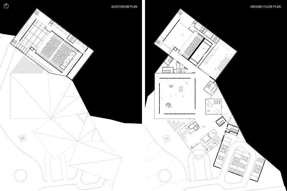 All the programs are at the same level, so the auditorium is half sunken. It takes advantage of the height gap, providing the required angle for the spectator seats…