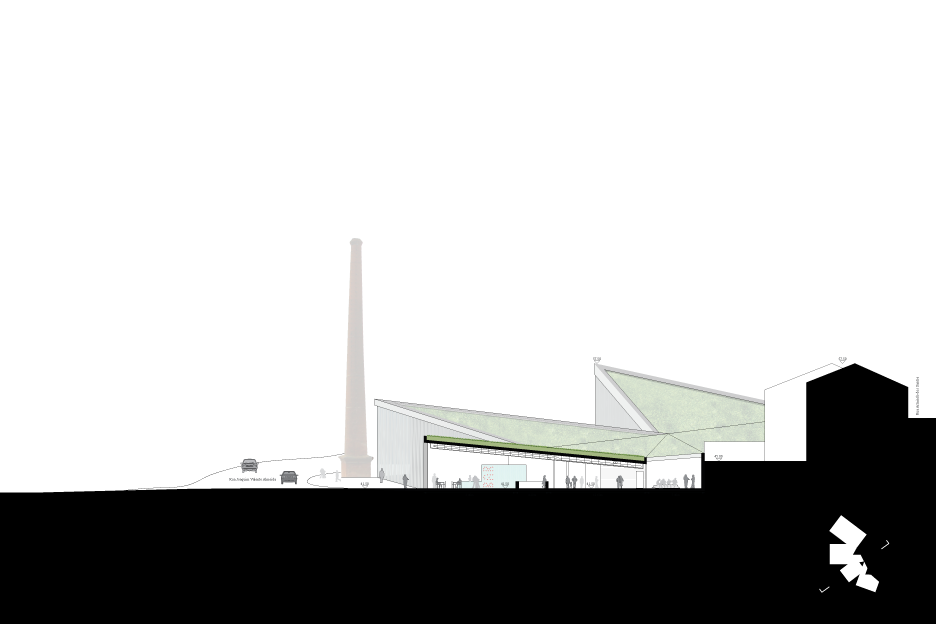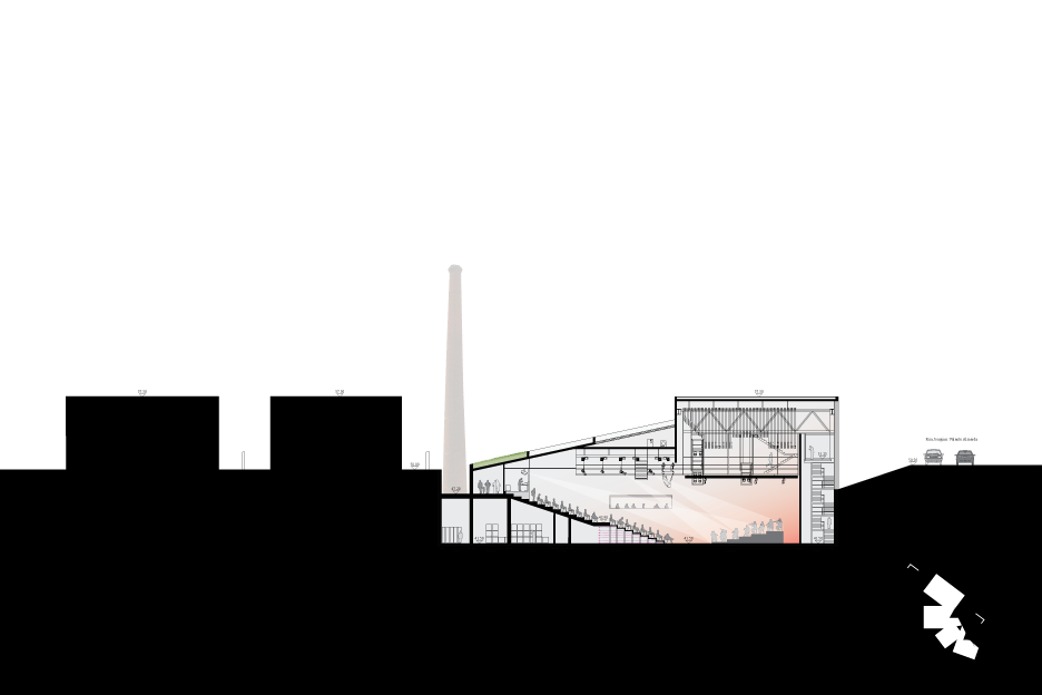 Each volume has a different height, according to programmatic needs. The entrance and administration block is close to the old factory chimney, which was kept to preserve the collective memory of the site…