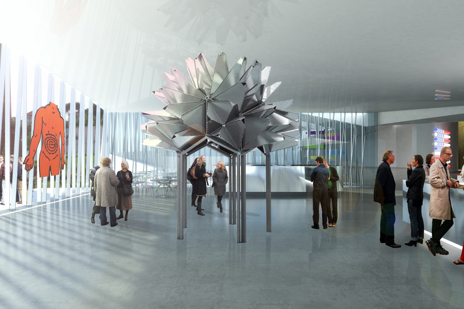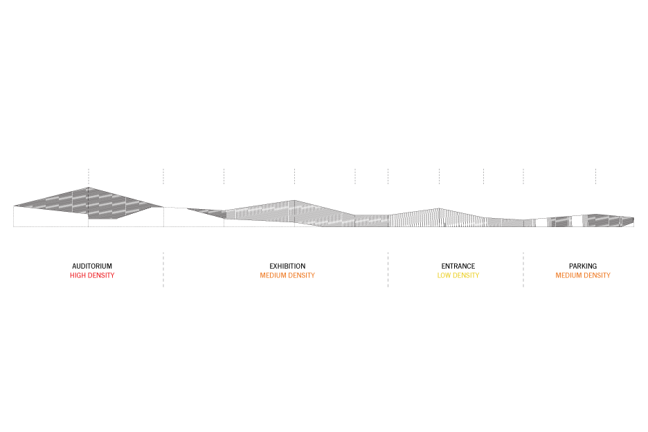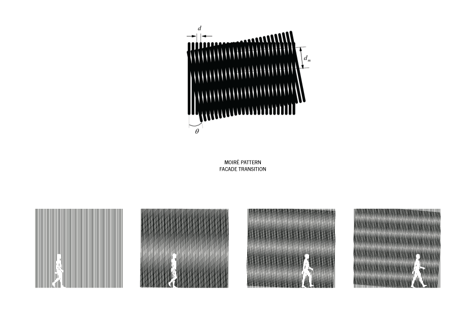 The center must function throughout day and night, showing itself to the city in diverse ways. The facade's Moiré pattern creates motion, which will attract attention to what is going on inside…