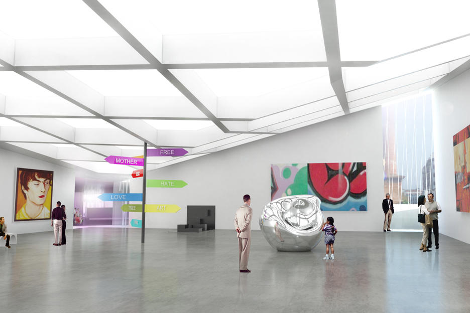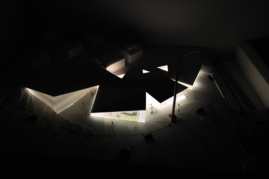 …by blending the roof with the northern streets, the citizens can adopt the top of the Center as a city park. It can hosts public programs, along with Art Center related venues and exhibition areas…