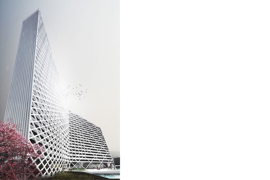 The facade design of the three buildings is driven by the demand for structural bracing, summer shading, winter heat retention, and panoramic views, resulting in a holistic solution…