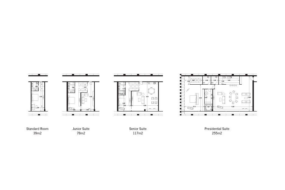 The visual relation with the city is amplified, as the suites grow in floor area, and the panorama expands from 4 to 12 meters wide. The presidential suite on the 23rd floor, has a 16 meters panorama over Yerevan…