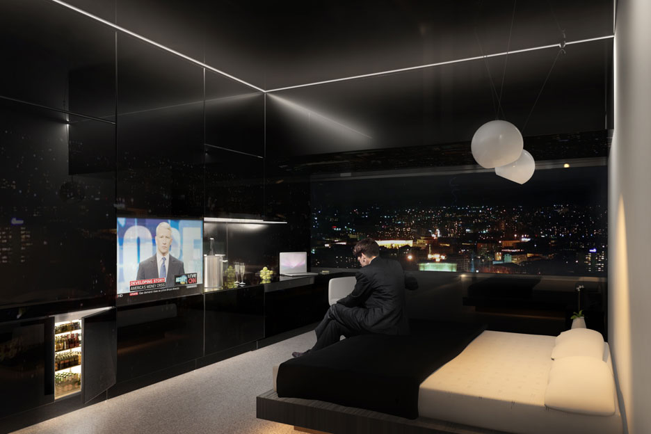 The interior design of all of the rooms focuses on the breathtaking views, where the dark interiors enhance the panorama, creating a sophisticated and intimate space…