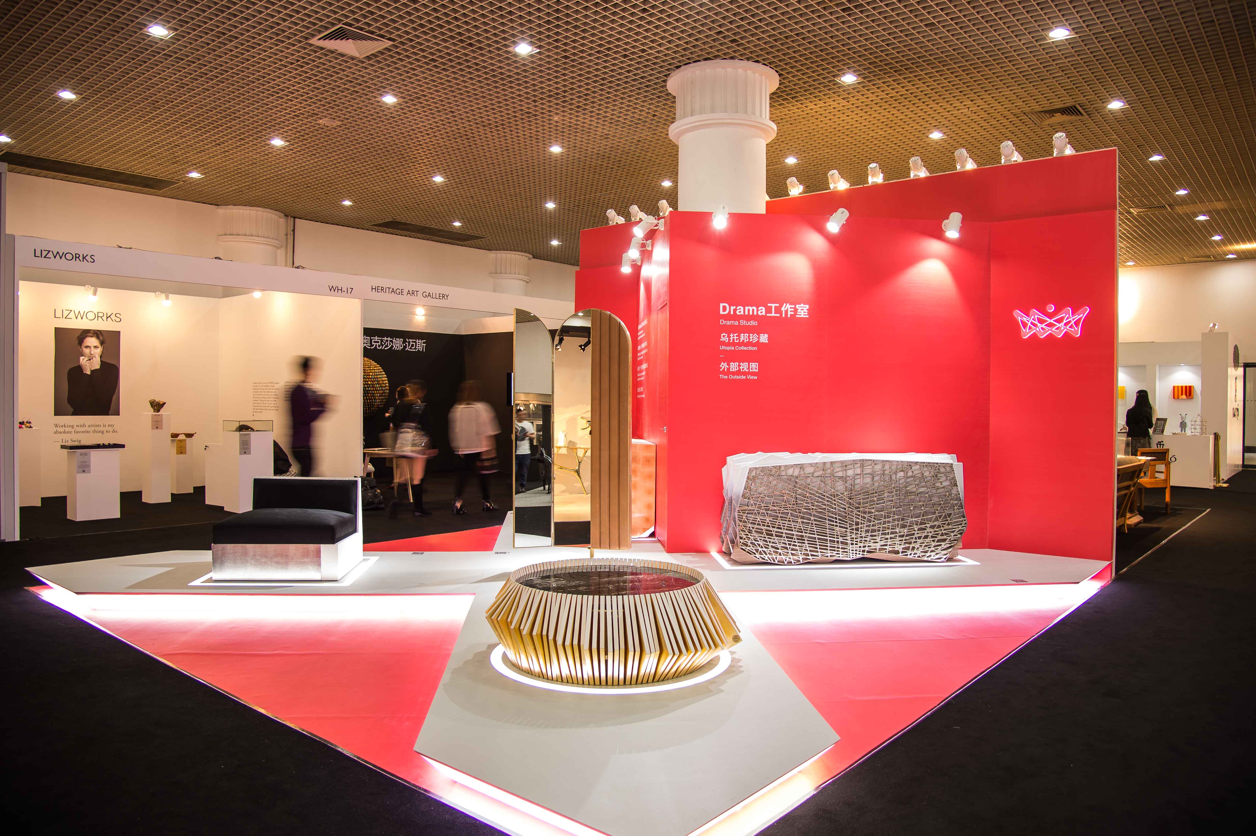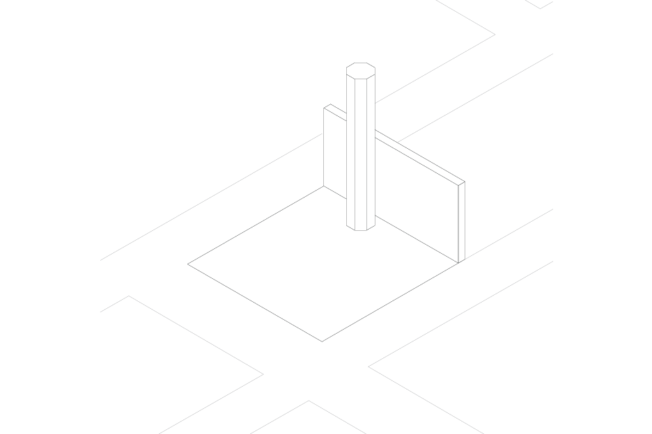 The 6x6 exhibition space is defined by the dividing wall and the imposing existing column, while Drama´s objects and circulation buffer take up to 50% of the available area. The 3 side condition, can be an opportunity but requires a thoughtful layout, where undefined boundaries could turn out to be a circulation issue…