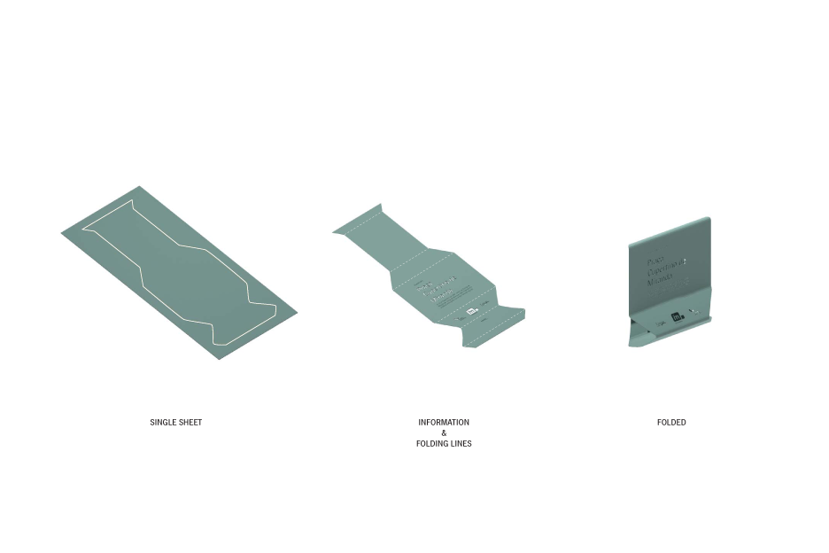The overall solution is somehow ambiguous where the robustness of the finished object is quite antagonistic with the thin materiality of the unfolded metal plate…