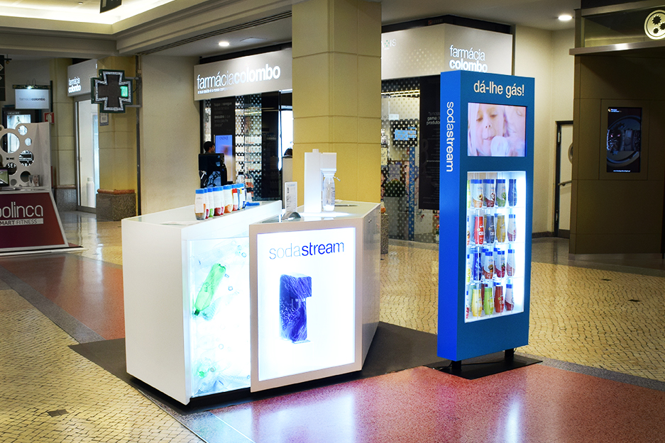 The Sodastream stalls were first implemented in Portugal, but soon to become internationally adopted by the brand, as it represents the lightness and contemporaneity image of the company.