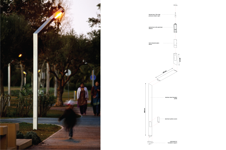 The result is a street lamp that is perceived in different ways, from different angles, as people move around it…
