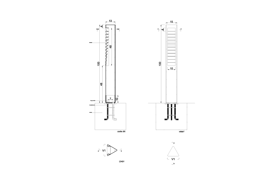 Signal columns/bollards were also designed, as part of a street light system. They follow the overall formal solution with the triangle section and brushed steel materiality…