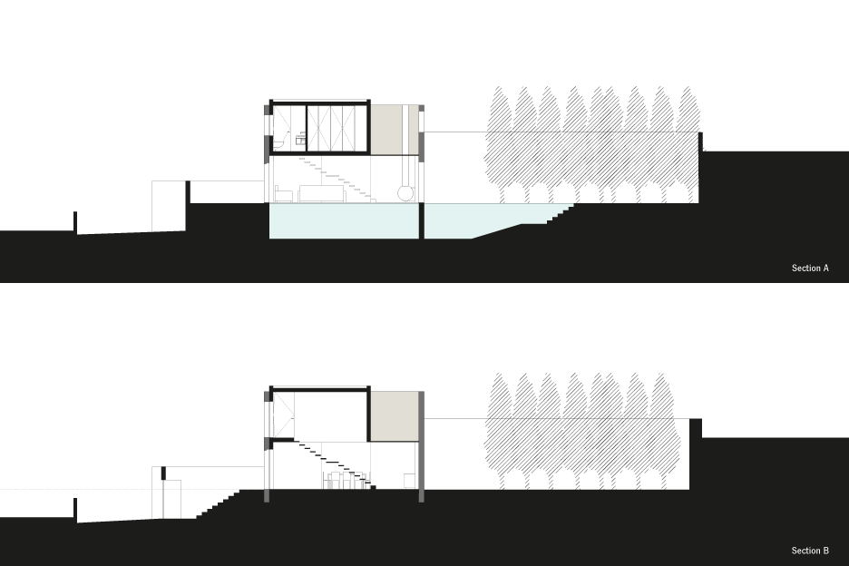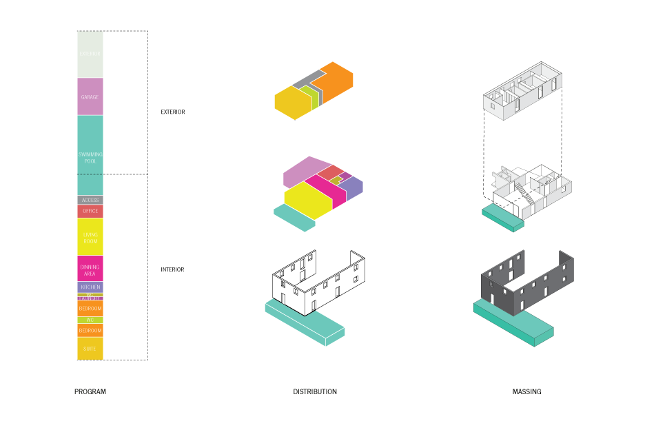 The 3-bedroom upper volume has views over the floor below, as well to the exterior. The pool becomes a mediator between the interior and exterior, breaking the rigidness of the existing structure…
