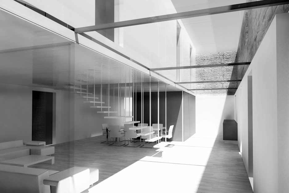The interior is removed while keeping the stone facade has the main character. Even creating new facade openings, there still was the need for more natural light, hence the Private volume on the 1st floor is offset from the facade…